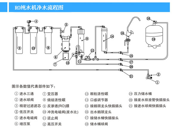 RO凈水機(jī)凈水流程: