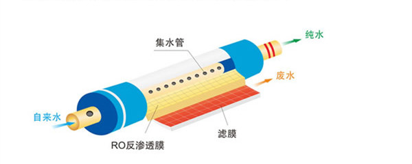 第四級是RO膜,經(jīng)過前三級濾芯處理后,水中部分較大的雜質(zhì)已經(jīng)被排除了,RO膜孔徑在0.001微米,主要去除水中除純水之外的其他細(xì)小污染物,如:細(xì)菌、病毒、余氯等。