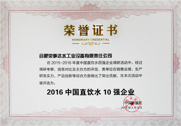 評審委員會由主辦方領導、凈水行業專家、戰略媒體、行業媒體、第三方調研機構及消費者代表組成,用國際通行方式,歷時三個多月,依據中國商報研究院發布的權威、公正,有影響力的凈水企業調研報告,綜合考慮消費者對于品牌的認知度、忠誠度及美譽度,評選出包括美的、3M等在內的百強企業,榮事達名列前茅,榮獲“中國直飲水10強企業”、“消費者信賴企業”、“中國凈水行業十佳服務商”、“消費者滿意品牌”多項大獎。