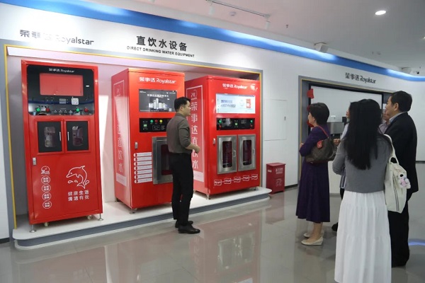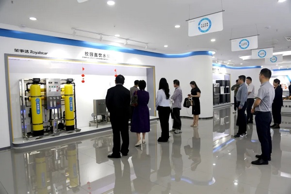 座談結束,在工作人員的引導下,大家參觀了榮事達智慧水世界展廳和智能家用凈水生產車間。了解了榮事達水工業公司的發展歷程、十大水處理系統、愛心公益和黨建工作等情況。參觀過程中,雙方黨支部成員深入交流,共同探討黨建工作與企業發展的深度融合之道。