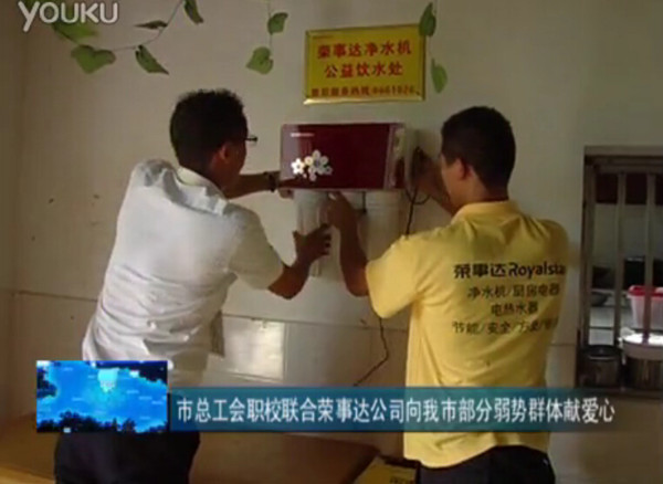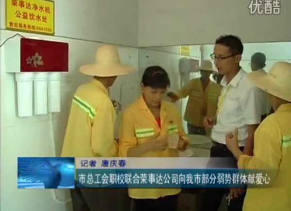 •     7月12日,榮事達水工業公司聯合棗陽市總工會職校開展捐贈凈水機等愛心活動,受到當地群眾一致好評與媒體高度關注,棗陽綜合頻道、經視頻道、都市頻道等多家媒體對活動進行了報道。