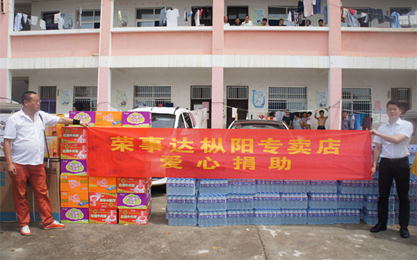 •     7月16日,榮事達水工業公司愛心慰問團隊攜手樅陽縣橫埠鎮政府,走進安徽省樅陽縣橫埠鎮方正小學安置點捐贈救災物資,為災民送去關懷!
